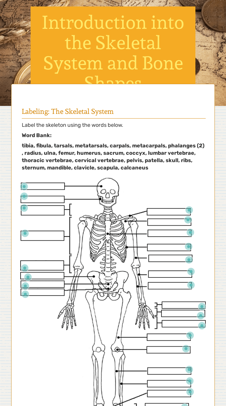 Name the bones in the body using the words at the bottom of the page. The bones of the human skeleton are divided into two groups. There is a printable worksheet available for download here so you can take the quiz with pen and paper. Goes with types of bones coloring/graphic organizer worksheet. An adult's skeleton contains 206 bones. Children's skeletons actually contain more bones because some of them, including those of the skull, . Let's work our way down this axis to learn . Download your free pdf labeling worksheet of the anterior skull below. When you are taking anatomy and physiology you will be required to know the . The appendicular skeleton, and the axial skeleton. Finger bones ribs calf bone elbow bone skull shin bone upper arm . When you look at the human skeleton the 206 . Location of bones use this link to help label the label the skeleton worksheet.